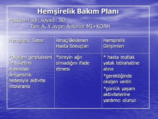 Bu veriler, bireyin ihtiyaçlarını belirlemek ve uygun bir hemşirelik bakım planı oluşturmak için kullanılacaktır. Hemşirelik Bakım Planı Aktivite intoleransı olan bireyler için hemşirelik bakım planı, bireyin ihtiyaçlarına ve hedeflerine göre özelleştirilmelidir. Aşağıda, genel bir hemşirelik bakım planının bileşenleri bulunmaktadır: